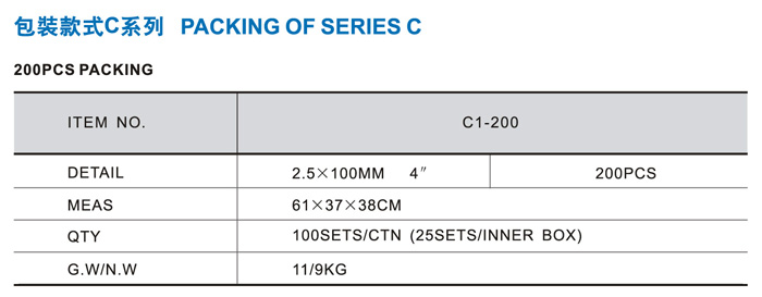 Home Products NYLON CABLE TIES SERIES PACKING OF SERIES C PACKING OF SERIES Cb200PCS PACKING