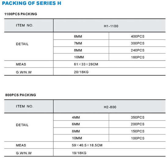 PACKING OF SERIES H