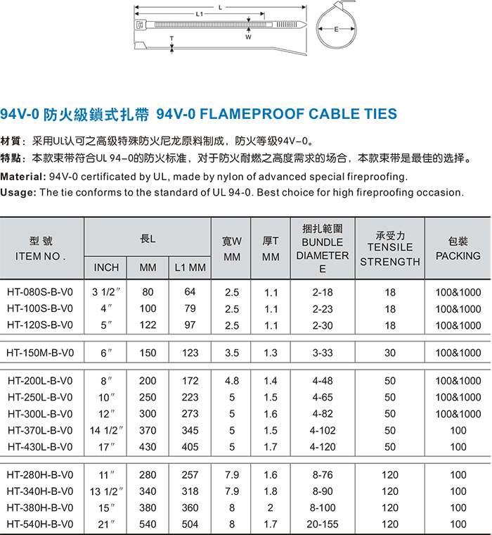94V-0防火级锁式扎带