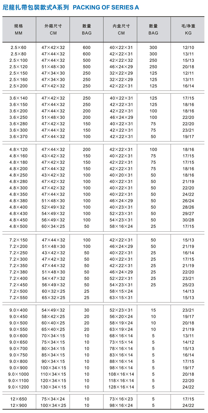 尼龙扎带包装款式A系列
